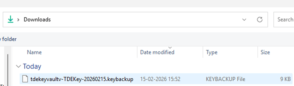 - Restrict access to the backup file. Apply strict access controls. Only authorized administrators responsible for disaster recovery should have access to the .keybackup file.Following these practices ensures that your TDE encryption keys remain protected, recoverable, and audit-compliant.