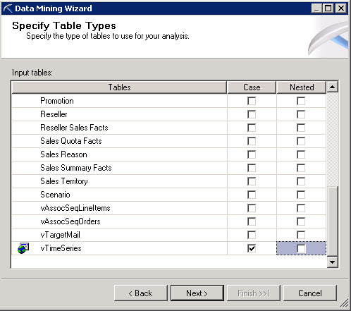 1. In the specify table, select the vTimeSeries View. This is the view than we mentioned in the getting started section with the input information.