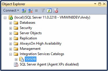 - A node named SSISDB is added to the integration Services Catalogs node in Object Explorer.