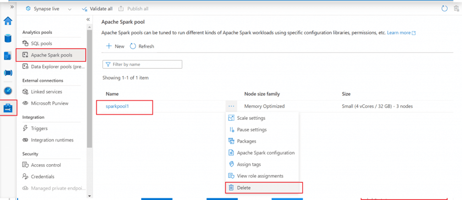 Delete the Spark Pool